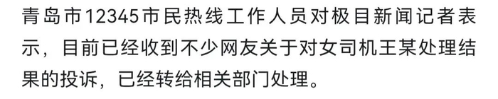 极目新闻记者也透露,青岛市的市民热线已经收到了不少网友对女司机王某处理结果的投诉。