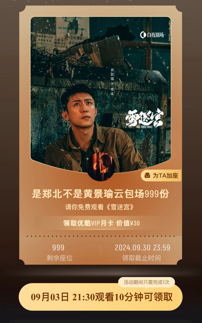 而云包场既变相送会员,又多加了一重在指定时间观看指定内容与时长才能领取的保险,不仅有利于在播剧关键节点的拉新与冲热度,更改进了试看环节,拉低门槛、加大激励。还是那句话,真金白银真实惠,比什么开播宣传都好使,甚至可能性价比更胜一筹。