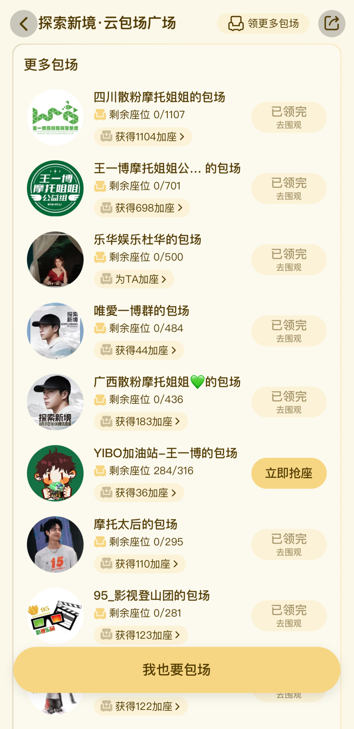云包场改良的正是这一点。它让粉丝有了一个可以去冲击的目标,其机制是透明的,效果是直接的。