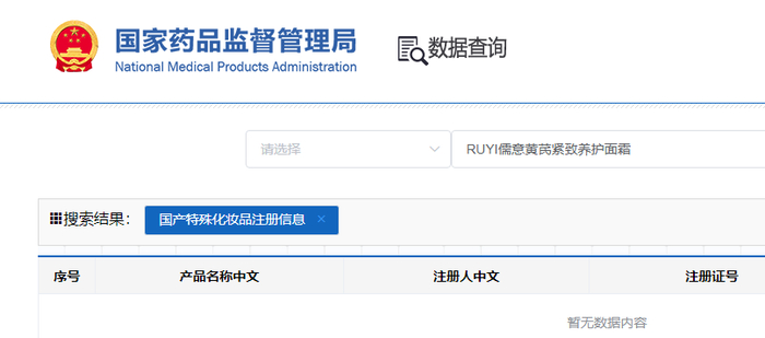 然而,官方旗舰店商品参数页面说明该产品非特殊用途化妆品,记者根据该产品的化妆品备案编号在国家药监局官网国产特殊化妆品注册信息页面也未查询到任何信息,却在国产普通化妆品备案信息页面查到了该产品。