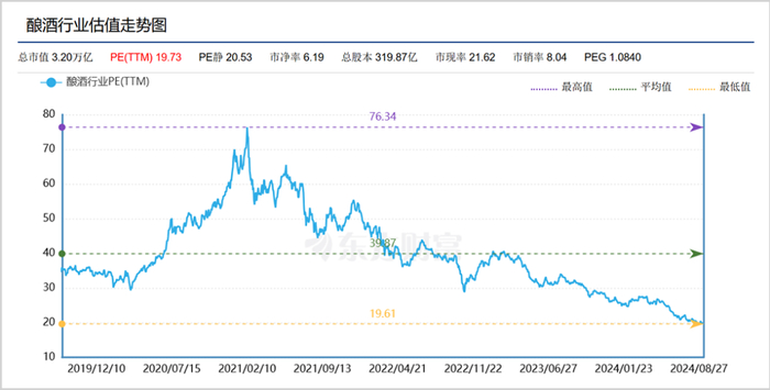 但到了2020年底,多个消费类板块估值来到了历史高位,比如白酒板块,据东方财富数据,板块最高估值曾达到76.34倍,远超过近年来40倍左右的平均水平,而当下尚不足20倍。
