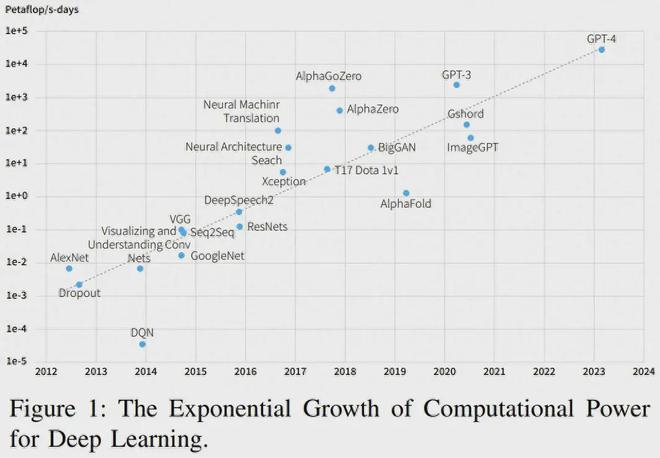 根据摩尔定律,计算机的速度平均每两年就会翻一倍,但深度学习的发展速度还要更快,如图 1 和 2 所示。