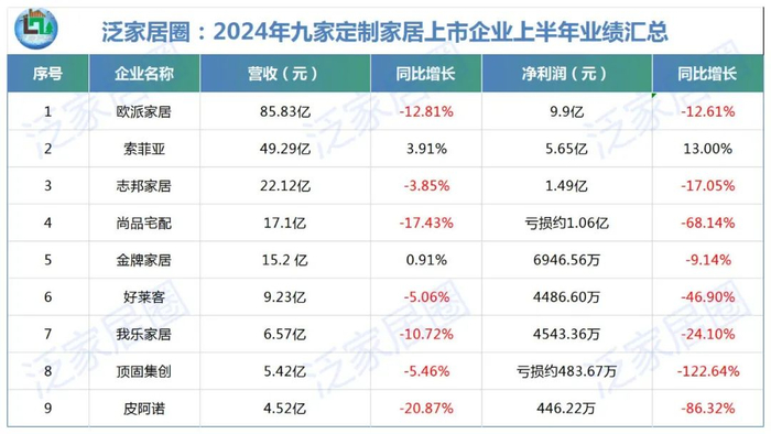 独家解读欧派、索菲亚、志邦、尚品宅配、金牌、我乐等半年报:下滑是主旋律,整装、外销等是新增长点,整体形势不容乐观