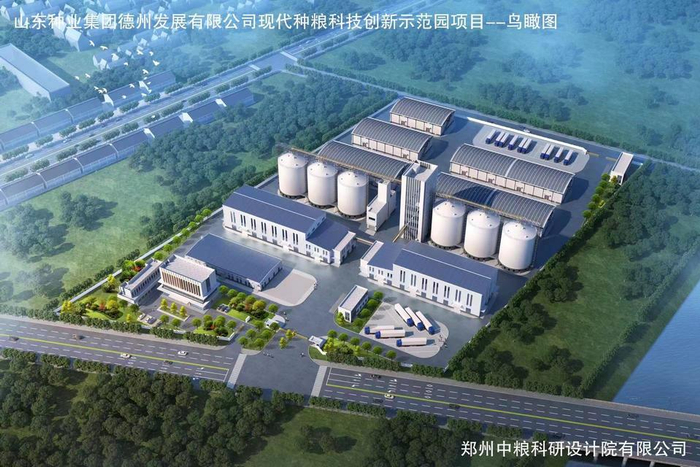 除此之外,项目配套“现代种粮科技创新示范园区”。山东种业党委书记、董事长段友臣数次到访武城县,与当地政府进行洽谈对接,最终选址武城县四女寺镇,规划占地84.03亩,提供农业服务、粮食商贸、粮食烘干、粮食仓储、农资超市直供、农技服务培训以及种子“集采集送”等一站式的全产业链服务,满足当地粮食产业的多元化需求。