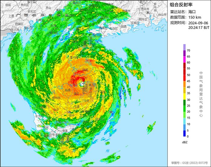 十二级风圈(约60公里):已影响文昌、海口、定安、澄迈、临高,预计6日22时离开文昌,7日00时离开海口,7日04时完全离开海南岛。