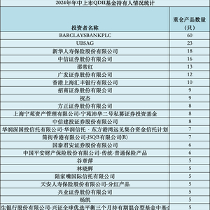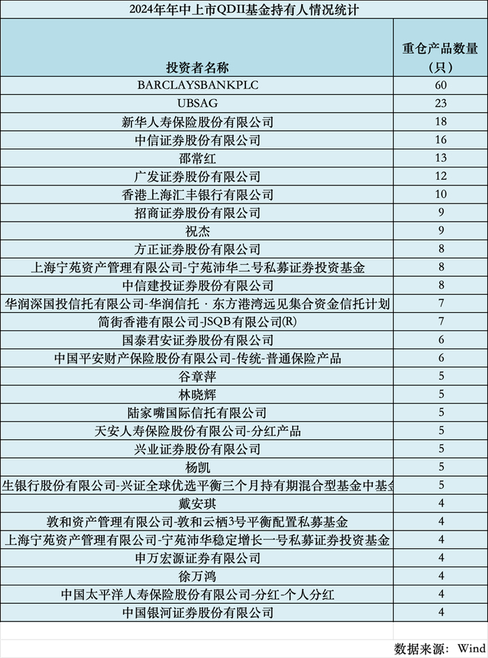 数据显示,持有QDII基金最多的机构为巴克莱银行有限公司,涉及产品数量多达60只。