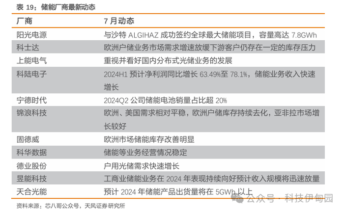 7月,储能需求维持高景气度,部分产品库存压力仍存,欧洲市场增速趋缓。