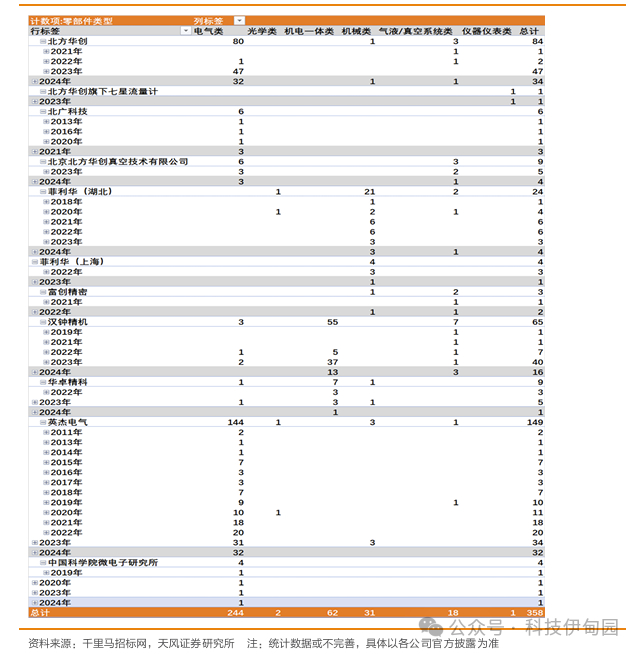 2024年7月,国内半导体零部件可统计中标共11项,同比+138%。主要为电气类9项,为北方华创、英杰电气中标,气液/真空系统类1项,为北方华创中标。