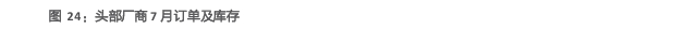 头部企业订单及库存情况:7月,消费类订单加速回升;汽车库存较高,订单波动;工业类订单不如预期,库存持续下降;通信订单疲软;新能源和AI订单需求强劲,关注光伏库存。