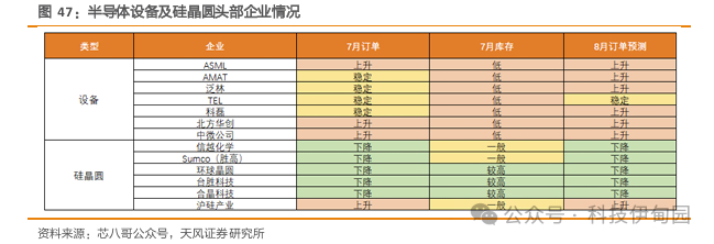 7月,设备行业维持弱势复苏态势,但硅晶圆客户库存较高,需求疲软持续