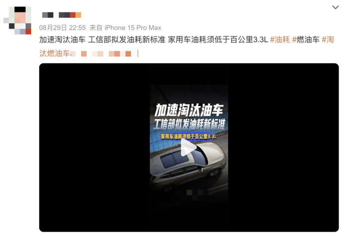 油耗高于3.3L要被淘汰,工信部拟定新规,燃油车天塌了