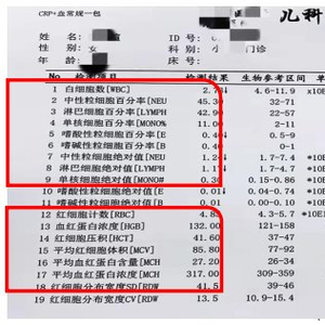 值得注意警惕的是:在血常规中我们往往容易忽略中性粒细胞的绝对值,如果孩子的中性粒细胞绝对值小于1.0提示中性粒细胞减少,若小于0.5,则提示中性粒细胞缺乏可能为病毒感染引起,也有可能是血液系统疾病,应当引起重视。