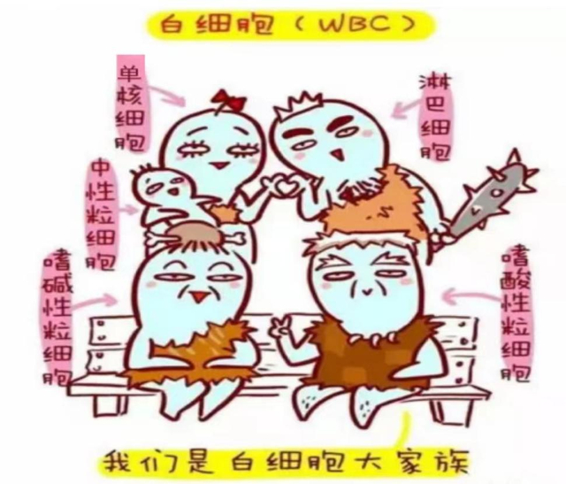 白细胞家族包括中性粒细胞、淋巴细胞、单核细胞、嗜酸性细胞和嗜碱细胞。