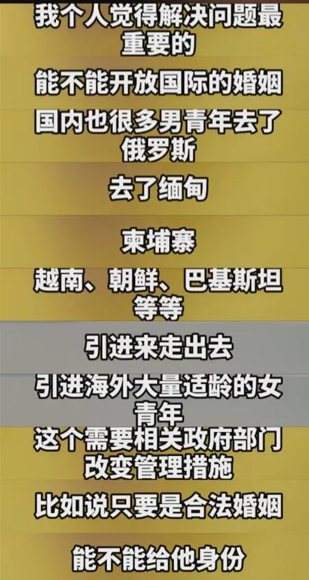 而针对这个情况,厦门某大学的一位教授就给支了个招:开放国际婚姻,通过“引进来,走出去”,引进海外适龄的女青年。