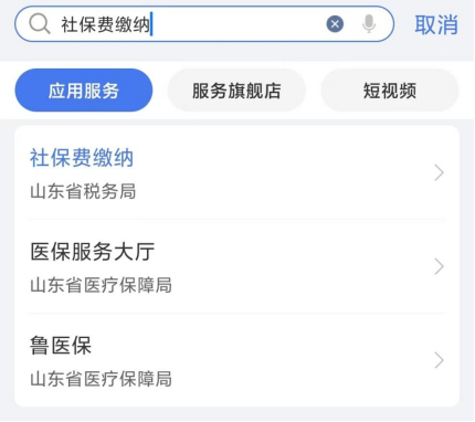 1.打开“爱山东”APP或小程序,首页搜索“社保费缴纳”,点击进入服务