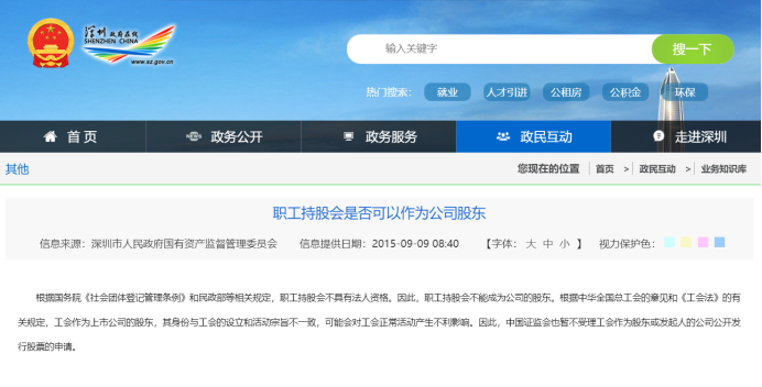 此外,深圳市市政府曾在官网回应网民留言,根据国务院《社会团体登记管理条例》和民政部等相关规定,职工持股会已不具有法人资格。因此,职工持股会不能成为公司的股东。