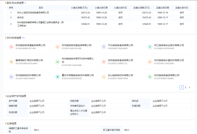 至于娃哈哈集团缴纳社保的人数,根据2023年工商年报显示,也仅有385人,换言之号称数万员工的娃哈哈集团,真正与娃哈哈集团签订劳动合同的仅有区区不到400人。