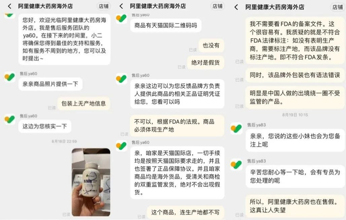 “现在大平台也信不过了。”近日,来自广州的吴先生向《消费者报道》投诉,6月底他在阿里健康大药房购买了一盒NMN保健品,收到货后却发现是假货。
