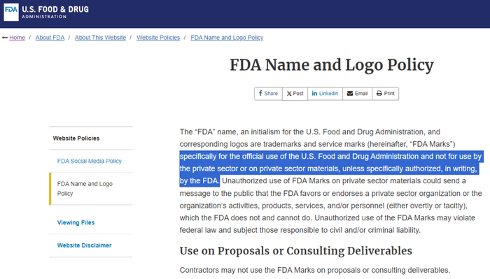 疑点二,FDA曾发布公告,FDA商标用于美国食品药品监督局官方用途,未经书面授权,不允许私营企业擅自使用FDA商标。那吴先生购买的保健品包装上印有“FDA”标识,该生产经营商是否涉嫌违法违规?