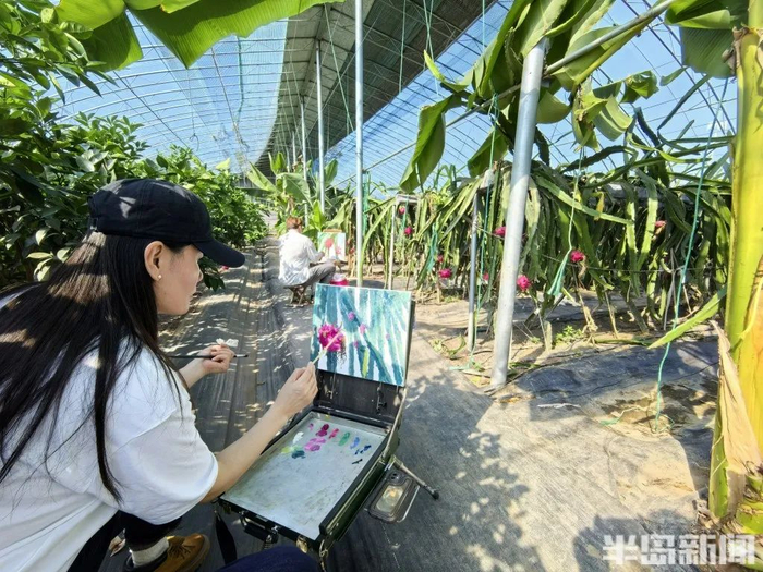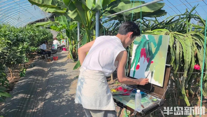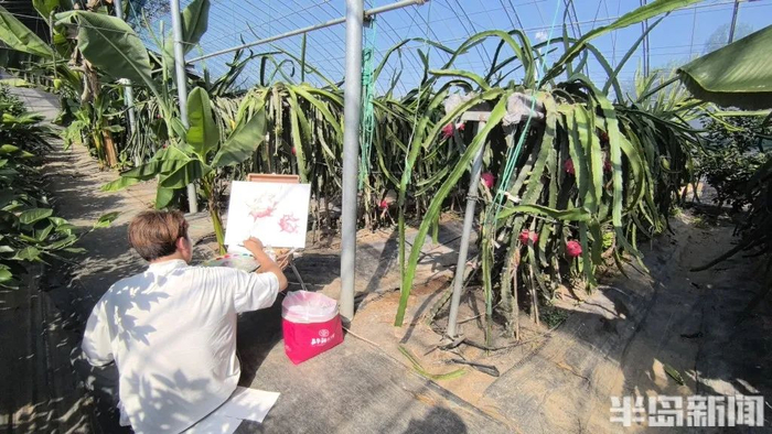 丰收体验官,田间探丰年。秋天是丰收的季节,也是充满收获喜悦的季节,半岛全媒体推出系列报道“丰收体验官”,邀请各行各业的市民共同感受丰收的喜悦。9月6日,记者来到西海岸新区张家楼街道的火龙果基地,本期邀请了张家楼街道达尼画家村的画家们,他们用笔触描绘丰收的喜悦,将画笔落在丰收的田野上。
