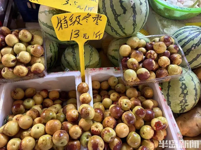 素有“糖包子”称号的无花果,出现在不少摊位上。记者注意到,此前售卖10元左右一斤的无花果,现在有的只需十几元就可以买到两斤。“有15元两斤的,有13元两斤的,比之前是便宜了,现在正是无花果多的时候。”一水果摊主向记者介绍,市场上的无花果主要产自山东威海,因个头大小差异,价格有所不同。