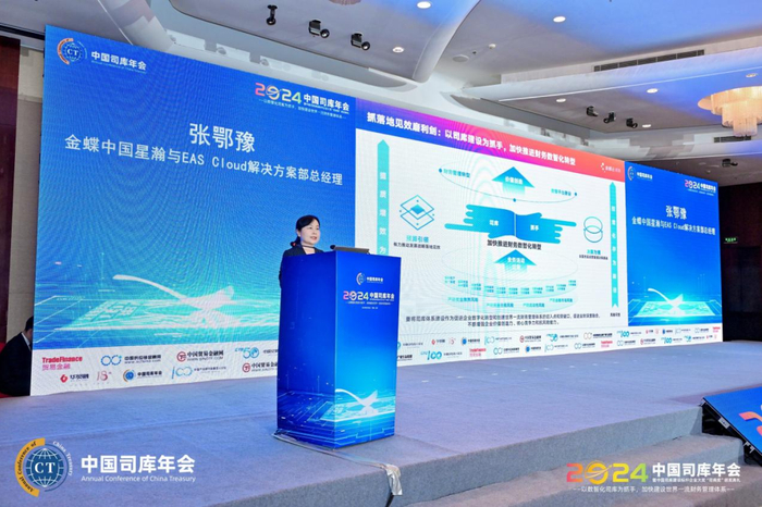 张鸣的演讲主题为“数智融合:司库管理体系新引擎”。他表示,用友在推动企业财务数智化转型的过程中,提供了一站式综合服务,涵盖司库体系的全方位咨询与规划、高阶业务蓝图设计、数据治理与分析模型、风险管理策略与风险模型的设计等。依托用友新一代司库管理产品,公司还推出了伴随式交付服务方案及可持续的运营维护方案,旨在助力企业构建起高价值、可持续且长久稳健运营的司库管理系统。用友全球司库产品领先的中台化设计——结算中台与金融中台,不仅确保了司库系统内部流程的高效协同,还强化了与外部系统和环境的无缝对接,实现了资金管理的安全性、高效性、智慧化及生态化,为企业的财务管理注入强大动力。