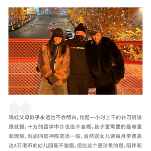 这次和徐妈三人同游日本,关系更进一步,连缺席在开演唱会的陈奕迅也抽空关注了他的社交账号,来自女儿奴“I’m watching you”的压力无处不在。