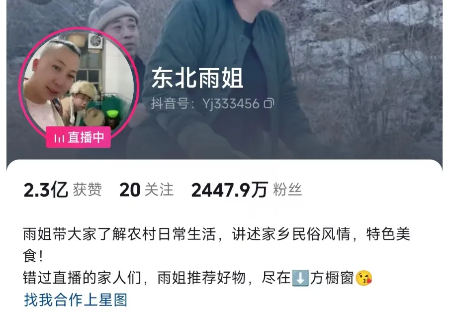 目前,东北雨姐抖音粉丝量为2447.2万。