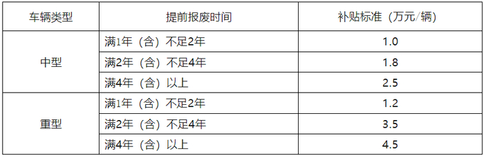 表1 提前报废老旧营运柴油货车补贴标准