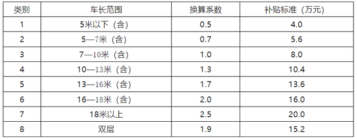 1.更新新能源城市公交车补贴标准见表3。
