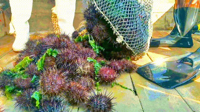 “海中刺客”,美味势不可挡。海胆与海带、裙带菜等藻类相伴相生,因为这些海菜可以为海胆提供充足的食物来源。
