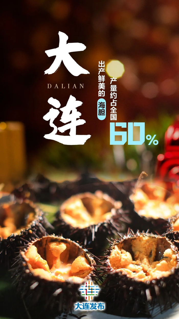 大连海水温度、盐度适宜,成就了海胆的优良品质。大连海胆有虾夷马粪海胆、大连紫海胆、黄海胆等品种,“大连紫海胆”获农业部农产品地理标志登记保护。