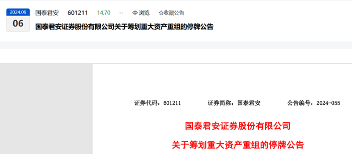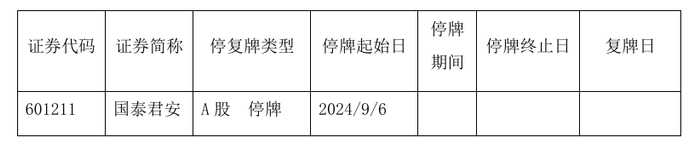 2024-09-06国泰君安:国泰君安证券股份有限公司关于筹划重大资产重组的停牌公告