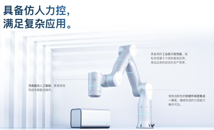 自适应机器人的核心特色之一为全手臂高精度、高响应的复合力控技术。