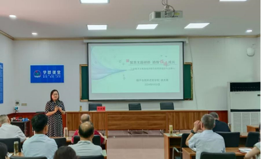 徐美展副校长开展了题为《聚焦主题研修助推校本成长—送教下乡精准培训的有效设计与实施》的主题讲座。通过精准的需求调研、全流程的培训设计、任务驱动的研修模式以及成果展示和总结机制,确保参训教师在每个环节都有明确的目标和实践机会,详细呈现了“六环节一延伸”中,每个环节的明确主旨目标和研修导向,紧扣各环节之间内在的逻辑关系和授课内容的坐标使命,精准定位,靶向实施。