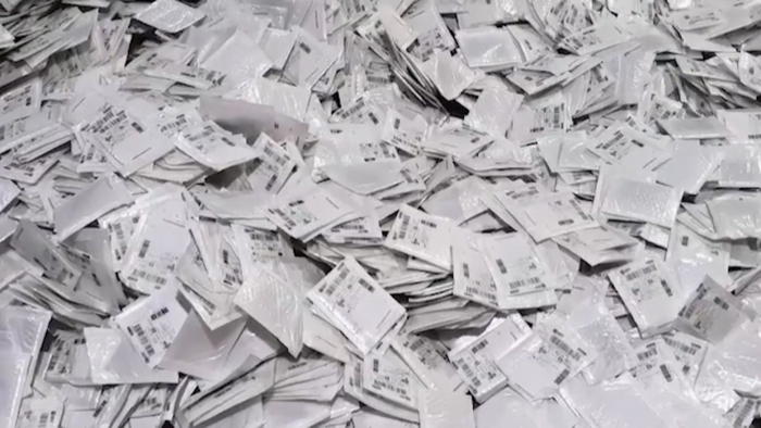青浦公安分局刑侦支队侦查员王强:这个超轻件的发货成本非常非常低,电商通过超轻件,发货到网点提供的辖区内的地址,然后快递网点无需配送直接签收,整个快递流程完成之后,他会获得0.5元到0.8元的获利,因为涉及到单量非常非常巨大,所以获利也是非常非常可观。