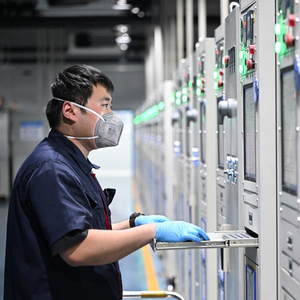 在位于济南市的某半导体科技有限公司生产车间内,工作人员在确认单晶生长参数。 新华社记者李贺 摄
