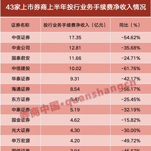 前十强座次重排、17家净收入为负数!上半年上市券商投行业务盘点