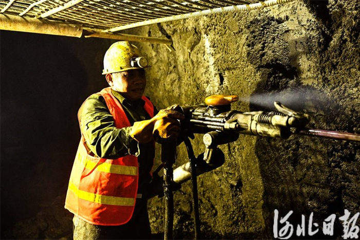 9月6日,建设者在邢台市信都区清家沟隧道工程现场进行打孔作业。