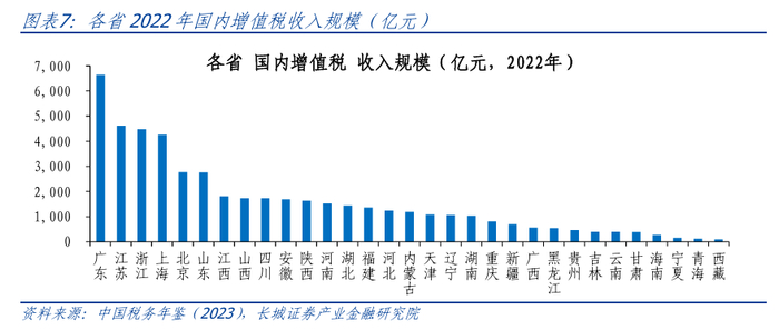 从增值税贡献省份看,由于增值税征收遵循生产地原则,并且进口环节增值税由各省征收后全部上缴中央,生产大省如广东、上海、江苏、浙江、北京,进口贸易大省如天津、辽宁、福建等增值税收入贡献较多。