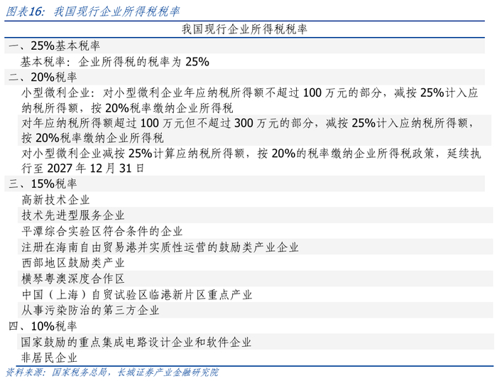 从税率看,我国基本税率为25%,国家鼓励的部分重点行业、小微企业等税率更低。税率国际对比看,我国法定税率相对较高。根据经济合作与发展组织发布的第五版《企业所得税收入统计报告》,2000年—2020年,141个包容性框架辖区的平均法定税率从28.2%大幅下降至21.3%;2021年—2023年稳定在21.1%。
