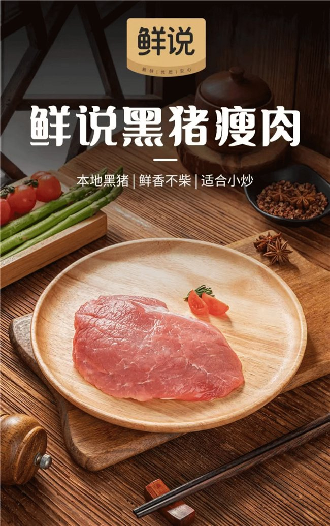 比如专注于“肉蛋”品类的“鲜说”,其重点产品——黑猪肉受到平台用户的广泛好评。朴朴采用优选黑猪猪种,粗粮谷物喂养,色红、味香、肉弹,不管是瘦肉、腿肉还是筒骨、五花肉,都是平台明星产品。