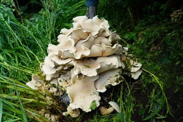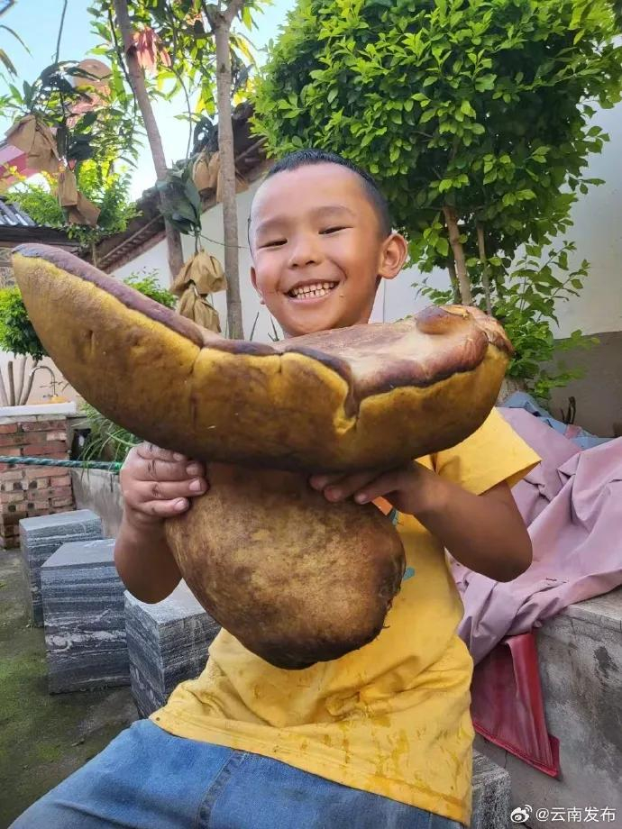 大理州漾濞县瓦厂乡瓦泥午村一村民在山上捡菌时发现一朵超大野生菌,经过辨认该野生菌属于见手青。通过测量,这朵见手青直径约40厘米,高约30厘米,重达7斤2两。