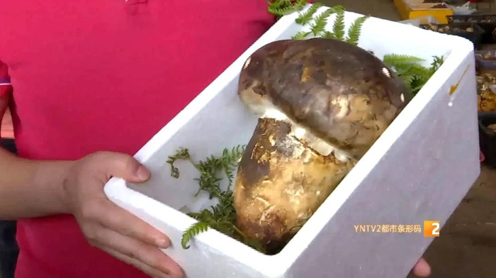 商户表示:“我们经营20多年的野生菌,从来没见过,产地一发来照片我就收购了,重1公斤7两多,非常罕见!农民采下来 ,我666元买过来的。”