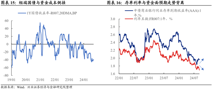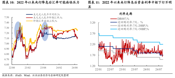 2022年3月至今,中美货币政策周期不同步,这使得2022年以来国内央行降息后,资金利率中枢下行不明显,甚至还有上行压力。