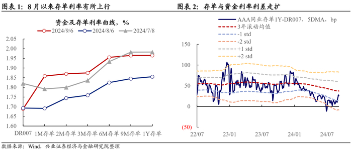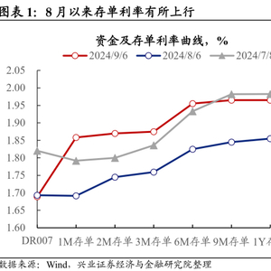 - 美联储9月大概率开启降息,国内金融体系缺“长钱”,市场对央行宽松操作的预期抬升。近期由于美联储9月开启降息的概率较大,且国内政府债发行加速后,银行体系“长钱”的稀缺性上升,8月以来存单利率有所上行。9月5日央行货政司司长邹澜表示“中国的货币政策将继续坚持以我为主,优先支持国内经济发展……加大逆周期调节力度”,并提及“降准……还有一定的空间”,市场对于后续央行降准降息的预期有所抬升。