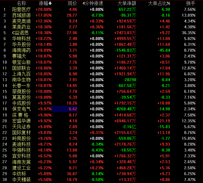 近期,央国企改革的步伐明显加快,特别是在资本市场上,一系列引人注目的并购重组事件,不仅引起了市场广泛关注,也触发了A股相关板块显著波动。国企改革概念股今日早盘持续走强,截至午间收盘,板块中共有近20只个股涨停,阳普医疗20CM涨停,西域旅游涨幅达17%。