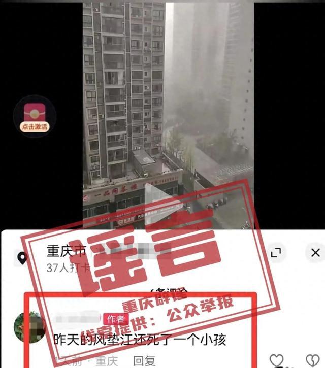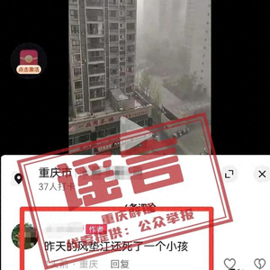 编造“垫江强对流天气致一小孩死亡”谣言,重庆辟谣:一网民被行政处罚