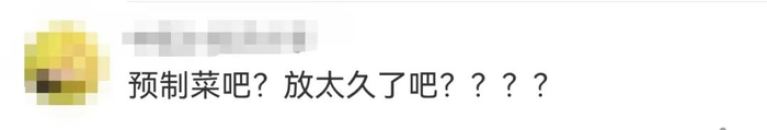 相关话题下,有网友评论表示,“以后不敢点了”。也有发出质疑称,“预制菜吧?放太久了吧?”