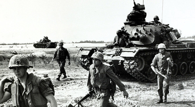 最终在那里开战的原因是美国人相信所谓"多米诺骨牌理论",即如果我们在越南失败,越南成为共产主义国家,那么泰国也会成为共产主义国家,日本也会成为共产主义国家,然后韩国也会成为共产主义国家……所以必须到处战斗,因为你不希望第一张多米诺骨牌在任何地方倒下。